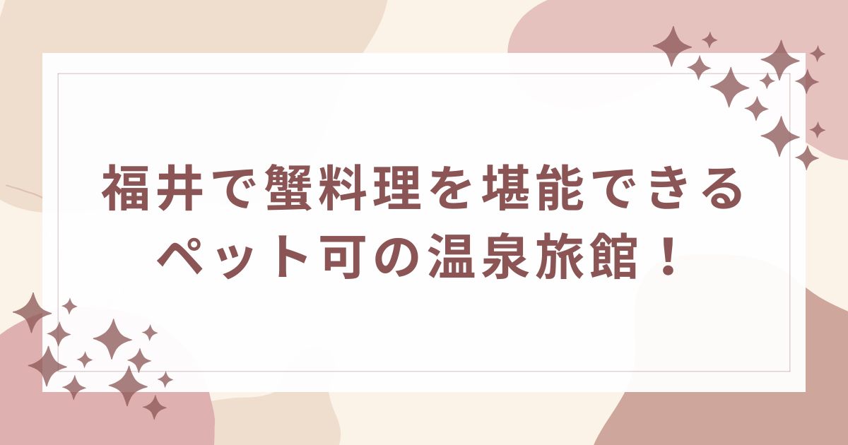 本記事では福井で「蟹料理が楽しめてペットと泊まれる」温泉旅館や民宿を4軒ご紹介します。